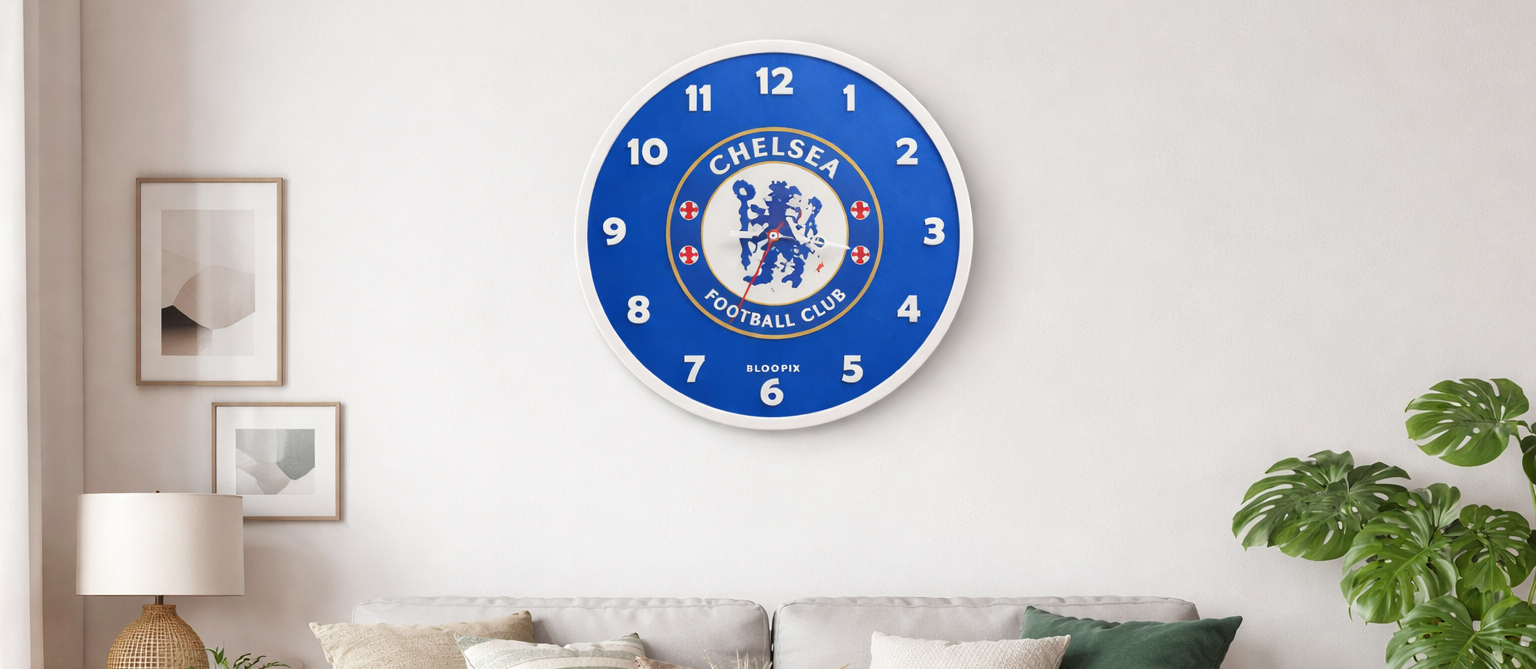 Show your support for Chelsea FC with this 17cm 3D printed wall clock. Designed in bold blue with a clean white frame and raised detailing, it’s the perfect decor piece for football fans, gaming rooms, bedrooms, or sports-themed spaces.