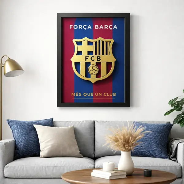 The design highlights the passionate chant “Força Barça” along with the legendary club motto “Més Que Un Club”, making it a meaningful decor piece for true Barcelona supporters.
